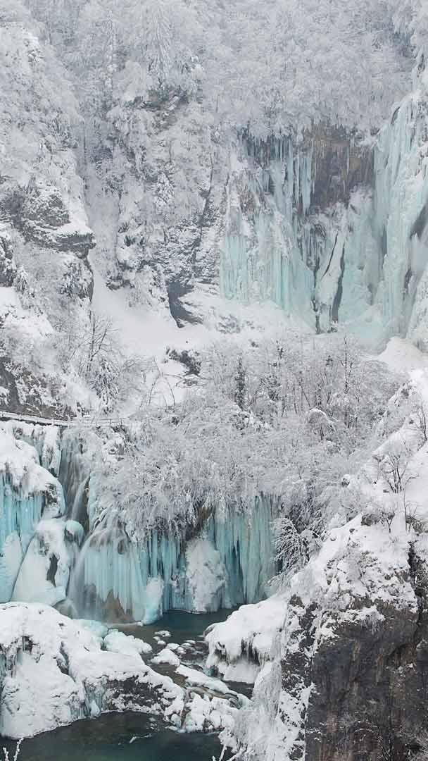Cachoeiras transformadas em gelo Parque Nacional dos Lagos de Plitvice, Croácia (© Massimo_S8/Getty Images)