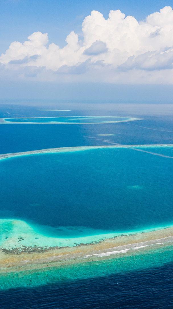 Os olhos do Oceano Índico Atóis no Oceano Índico, Maldivas (© Amazing Aerial Premium/Shutterstock)
