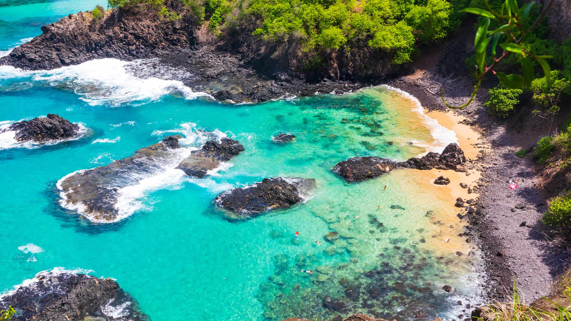 Um banho verde esmeralda Vista de Baía dos Porcos em Fernando de Noronha (© Reuber Duarte/Getty Images)