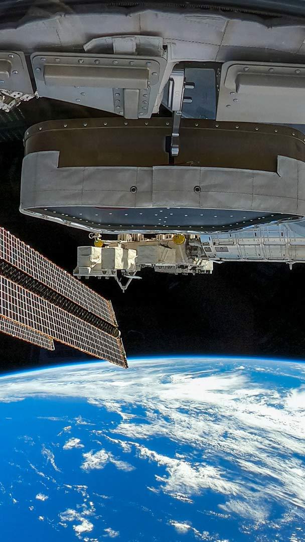 108 minutos que mudaram o mundo Vista da cúpula da Estação Espacial Internacional sobre o Oceano Pacífico Sul (© NASA)