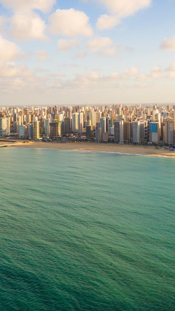 Histórias sussurradas pelos ventos Vista aérea da Praia de Iracema, Fortaleza, Ceará, Brasil (© stocklapse/Getty Images)