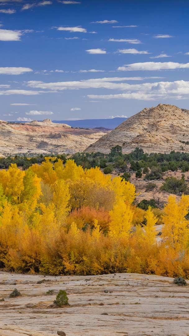 Um toque de outono dourado Árvores de algodão no Monumento Nacional Grand Staircase-Escalante, Utah, EUA (© Jeff Foott/Minden Pictures)
