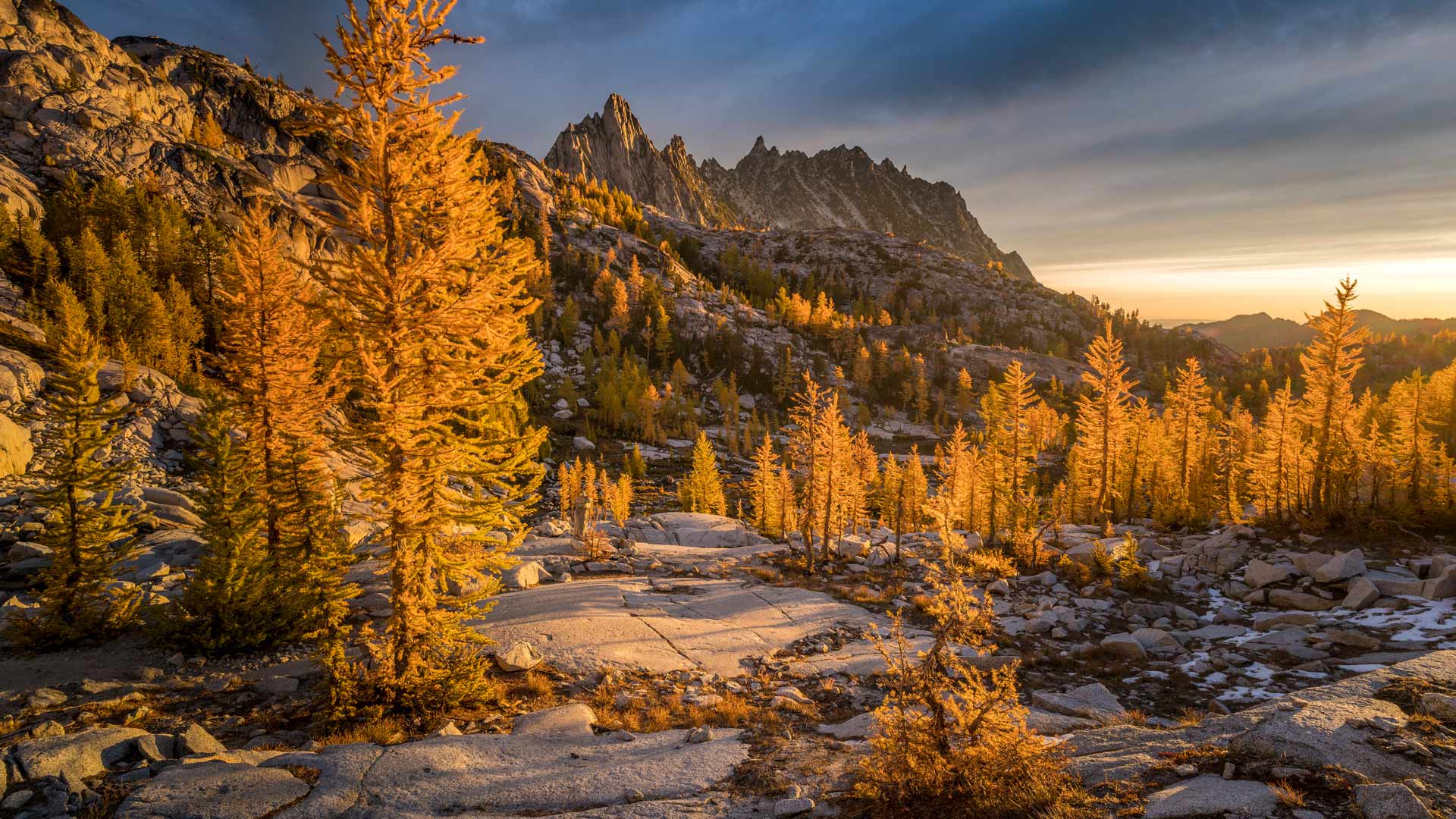 Golden larches and Prusik Peak, Enchantments, Washington © Jim Patterson/Tandem Stills + Motion