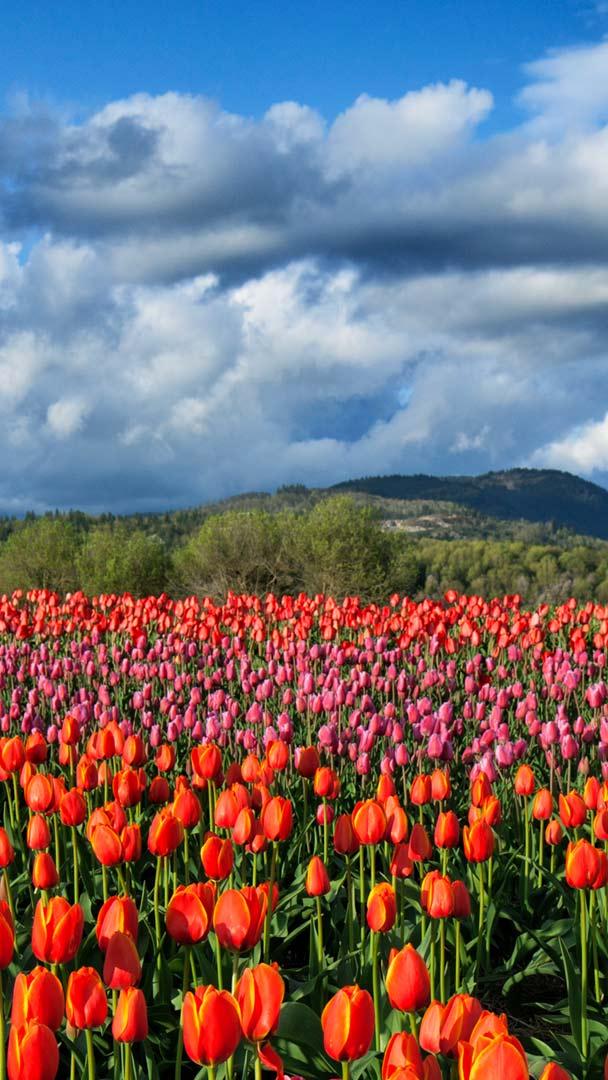 春意盎然 弗雷泽河谷的郁金香田,阿伯兹福德,不列颠哥伦比亚省,加拿大 (© LeonU/Getty Images)