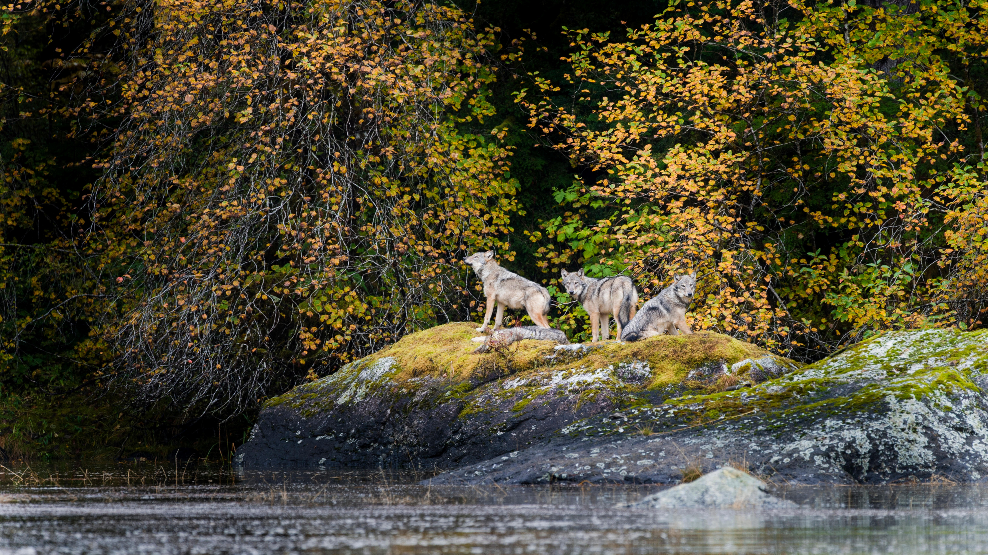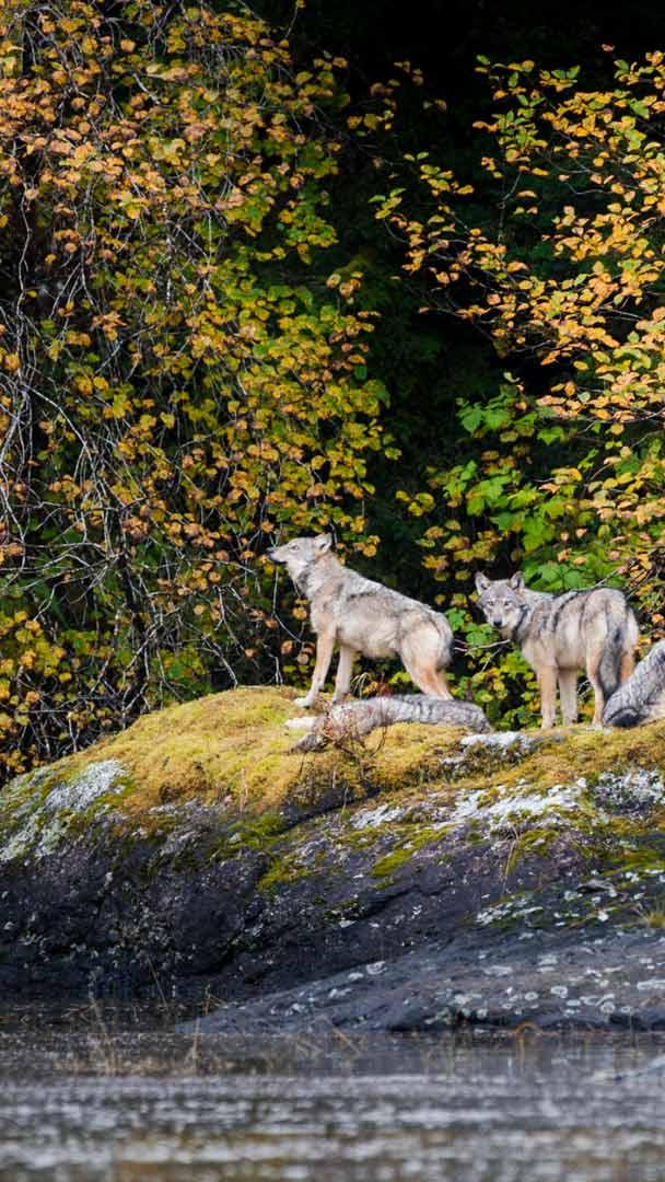 Stellen Sie sich vor, Sie wandern durch die nebelverhangenen Wälder des Great Bear Rainforest in Kanada und hören plötzlich das Heulen der Kanadischen Küstenwölfe. Diese faszinierenden Tiere, die in der kanadischen Provinz British Columbia heimisch sind, leben in einem einzigartigen Ökosystem, das sich von Vancouver Island bis zur Grenze Alaskas erstreckt. Sie sind eine besondere Unterart des Grauwolfs und führen ein halb-aquatisches Leben und sind dafür bekannt, lange Strecken zwischen den Inseln schwimmend zurücklegen, um zu jagen und ihre Territorien zu weiten. Ihre Ernährung besteht hauptsächlich aus Fischen, Muscheln, Krabben, Ottern und Robben, was sie von anderen Wolfsarten unterscheidet. Die Wölfe leben in engen Familienverbänden und verständigen sich durch Knurren, Bellen und Winseln, sodass man sie oft hört, bevor man sie sieht.