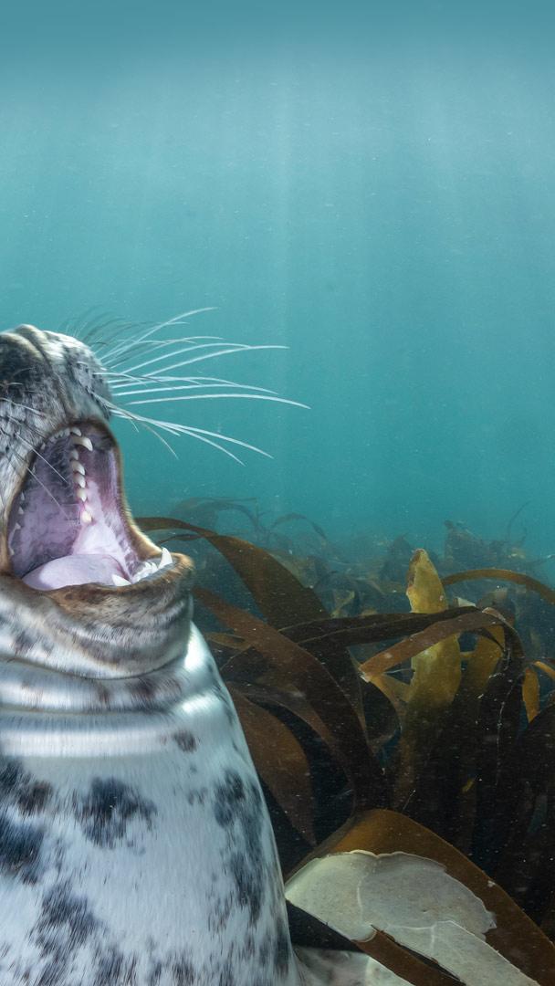 Was gibts da zu lachen? Kegelrobbenwelpen, Lundy Island, England (© Henley Spiers/Minden Pictures)