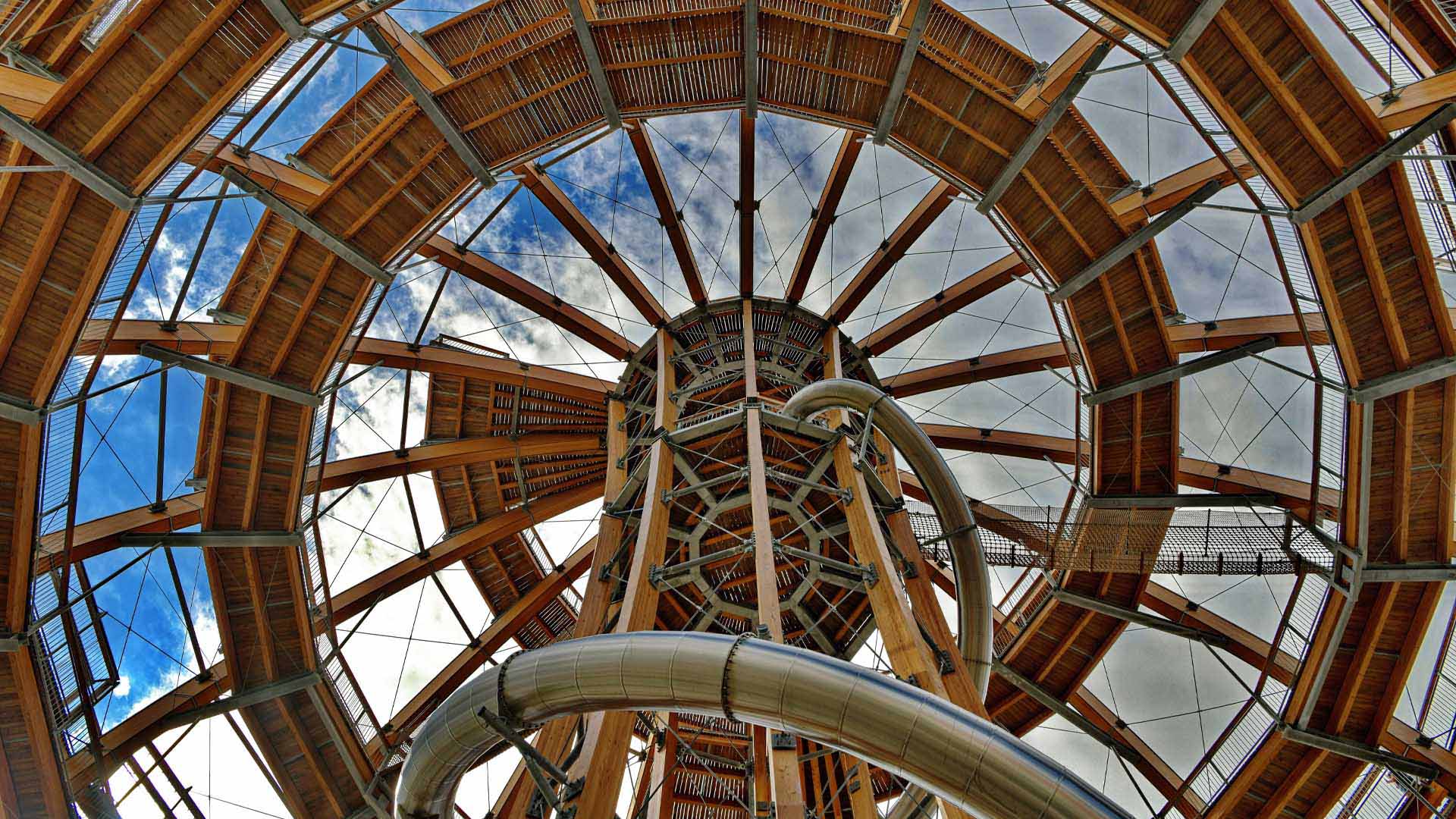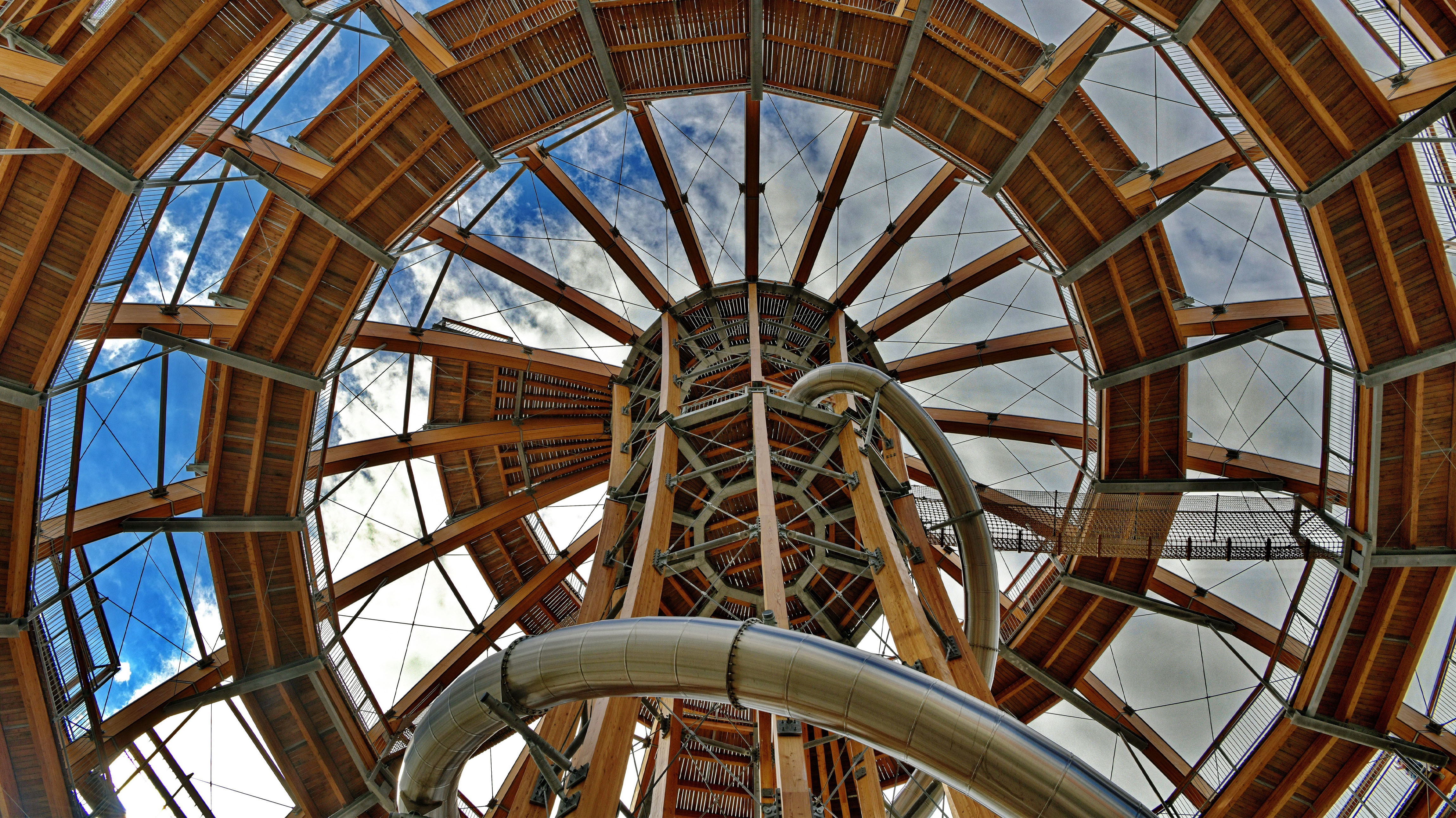 Die Welt in einer Kugel Erlebnisholzkugel, Steinberg am See, Bayern (© Rüdiger Hess/geo-select FotoArt)
