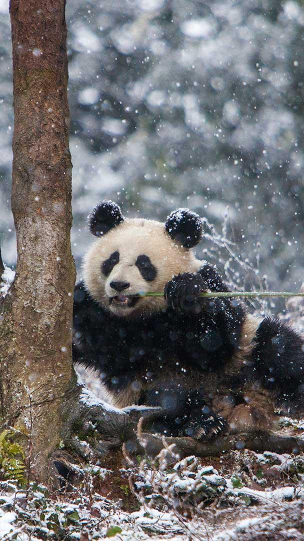 Genießen Pandas den Winter? Panda-Station Chengdu, China (© Jim Zuckerman/Jaynes Gallery/DanitaDelimont)