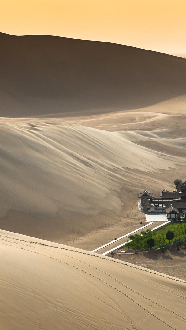 Dieser See ist keine Fata Morgana Mondsichel-See bei Dunhuang, Provinz Gansu, China (© R7 Photo/Shutterstock)