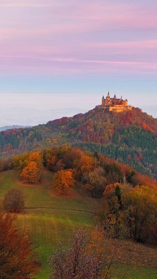 Herbst auf der Schwäbischen Alb Blick auf die Burg Hohenzollern in der Nähe von Hechingen, Schwäbische Alb, Baden-Württemberg (© Cornelia Dorr/eStock Photo)