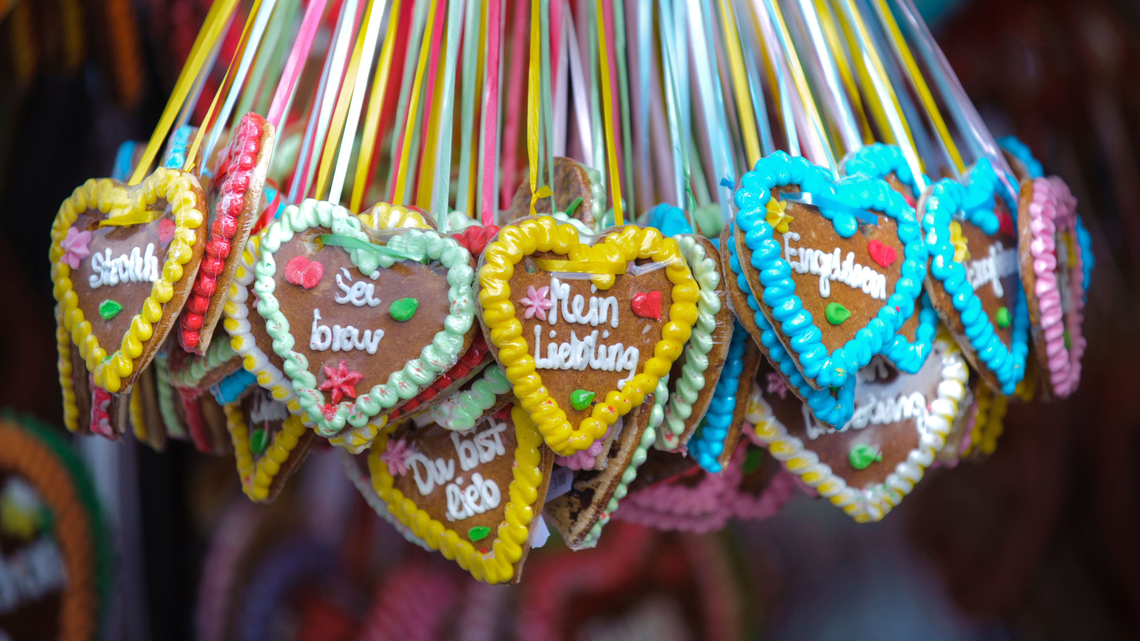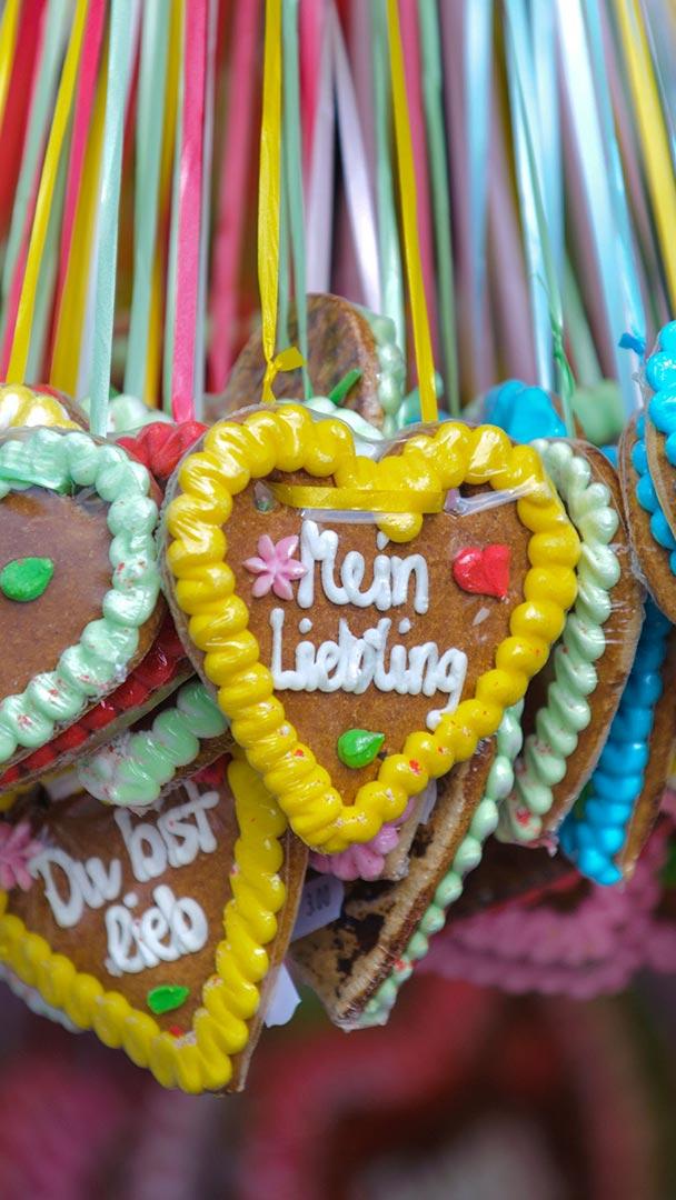 Süße Versuchung Lebkuchenherzen, Oktoberfest München, Bayern (© filmfoto-03edit/Alamy)