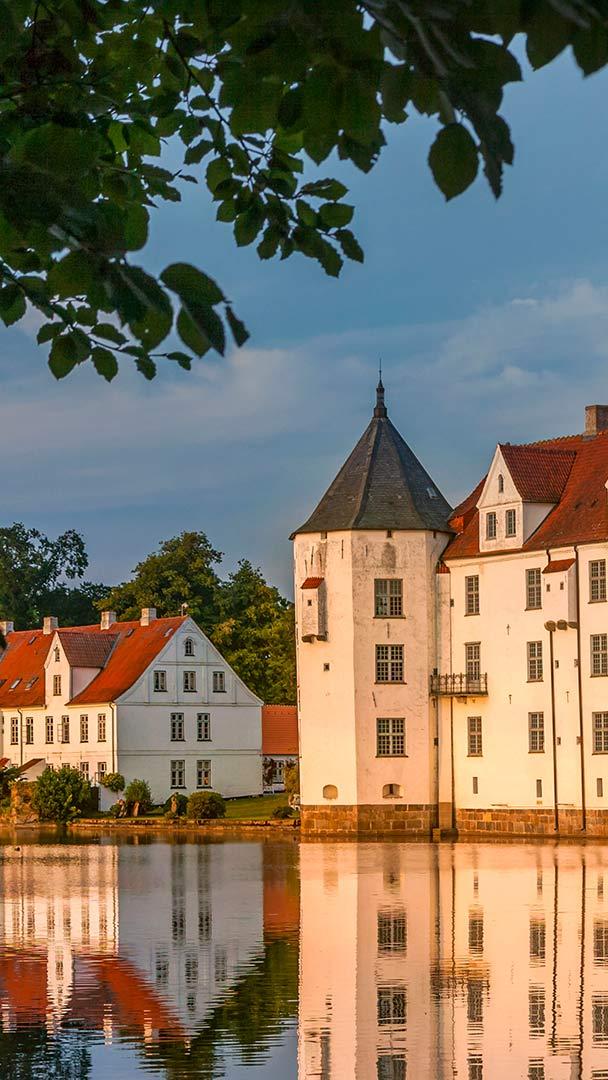 Wasserschloss an der Flensburger Förde Schloss Glücksburg im Abendlicht, Glücksburg, Schleswig-Holstein, (© Christian Back/eStock Photo)