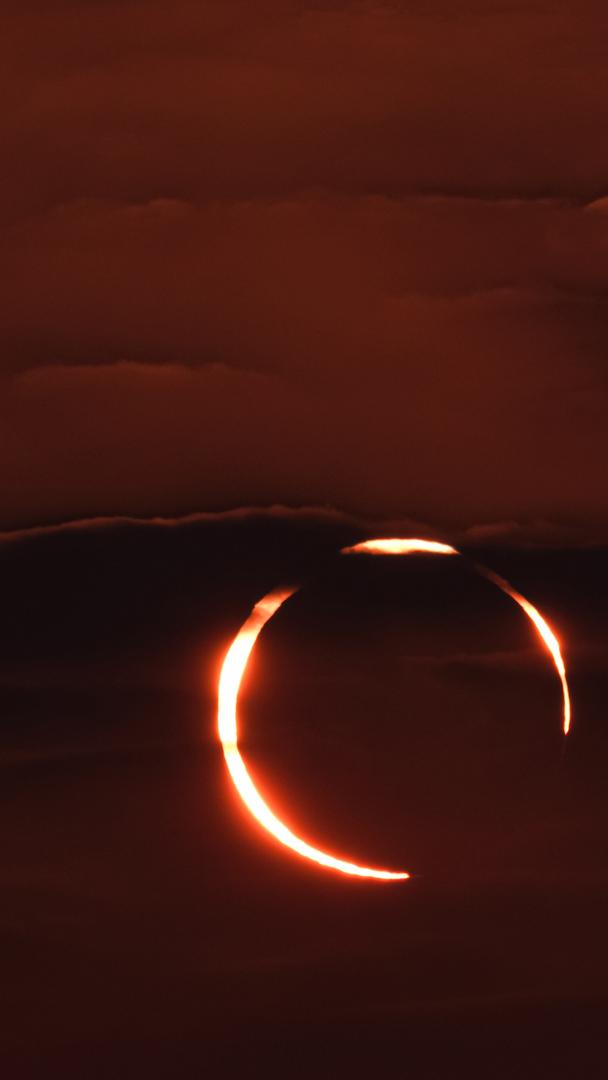 Himmelsbeobachter und Wissenschaftler haben auf den heutigen Tag gewartet: Eine ringförmige Sonnenfinsternis wird den Himmel über Amerika verdunkeln! Eine Sonnenfinsternis ist nichts anderes als eine Ausrichtung von Sonne, Erde und Mond, die dazu führt, dass die Erde durch den Schatten des Mondes hindurchgeht. Aber warum ist das heute anders? Der Mond wird aufgrund seiner elliptischen Umlaufbahn weiter von der Erde entfernt sein. Dadurch erscheint er kleiner und lässt die Helligkeit der Sonne durchscheinen, wodurch ein „Mondring” entsteht: der „Ring of Fire“. Hier zu sehen von Doha aus, Katar, im Jahr 2019.