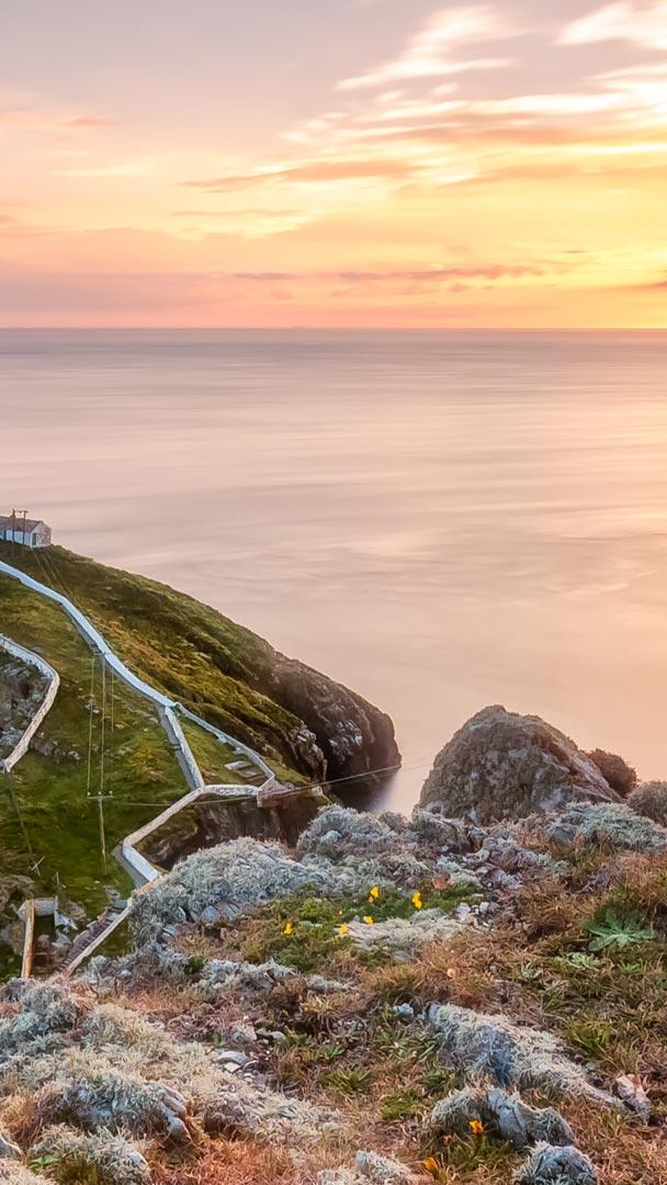 Auf den rauen Klippen von Holy Island in Wales thront der Leuchtturm South Stack majestätisch über die Tiefen der Irischen See. Seit seiner Errichtung im Jahr 1809 dient der fast 28 Meter hohe, weiße Turm als unentbehrlicher Wegweiser für Seefahrer und gewährleistet die sichere Durchfahrt von Schiffen auf der Route Dublin-Holyhead-Liverpool. Die ursprünglich mit Pottwalöl betriebenen Lampen wurden im Laufe der Zeit durch modernere Technologien wie LED-Lampen und Fresnel-Linsen ersetzt. Mit seinem kraftvollen Lichtstrahl, der bis zu 45 Kilometer weit reicht, ist der 1984 in Betrieb genommene Leuchtturm auch heute noch eine wichtige Navigationshilfe.