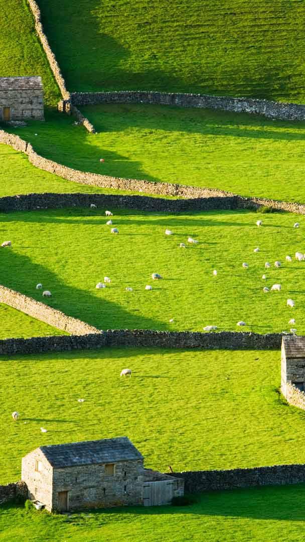 Das alte Dorf Gunnerside im Yorkshire-Dales-Nationalpark (Großbritannien) strotzt nur so vor englischem Charme und Geschichte. Stellen Sie sich vor, Sie schlendern durch die engen Gassen, umgeben von sanften Hügeln, saftigen Weiden und steinernen Cottages, und hören dabei nur das Rauschen des Flusses Swale. Der 1954 gegründete Nationalpark erstreckt sich über 2.100 Quadratkilometer und beherbergt mehr als 1.000 Bauernhöfe. Eines der markantesten Merkmale der Region sind die Trockenmauern, die ohne Mörtel gebaut wurden und Hunderte von Jahren überdauern können. In den Dales soll es über 8.000 Kilometer dieser Mauern geben.