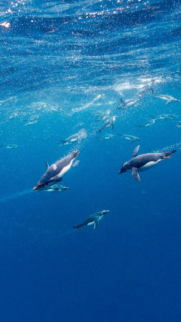 ¡Zambullámonos en el Día de Concienciación sobre los Pingüinos! ¿Cuántas especies de pingüinos podrías nombrar? En las gélidas aguas del Pasaje de Drake en Chile, los pingüinos macaroni se deslizan con destreza entre plácidos cardúmenes de plancton. Estas aves, con sus peculiares crestas color ámbar y su destacado pico naranja, son una de las 18 especies de pingüinos que habitan el hemisferio sur.