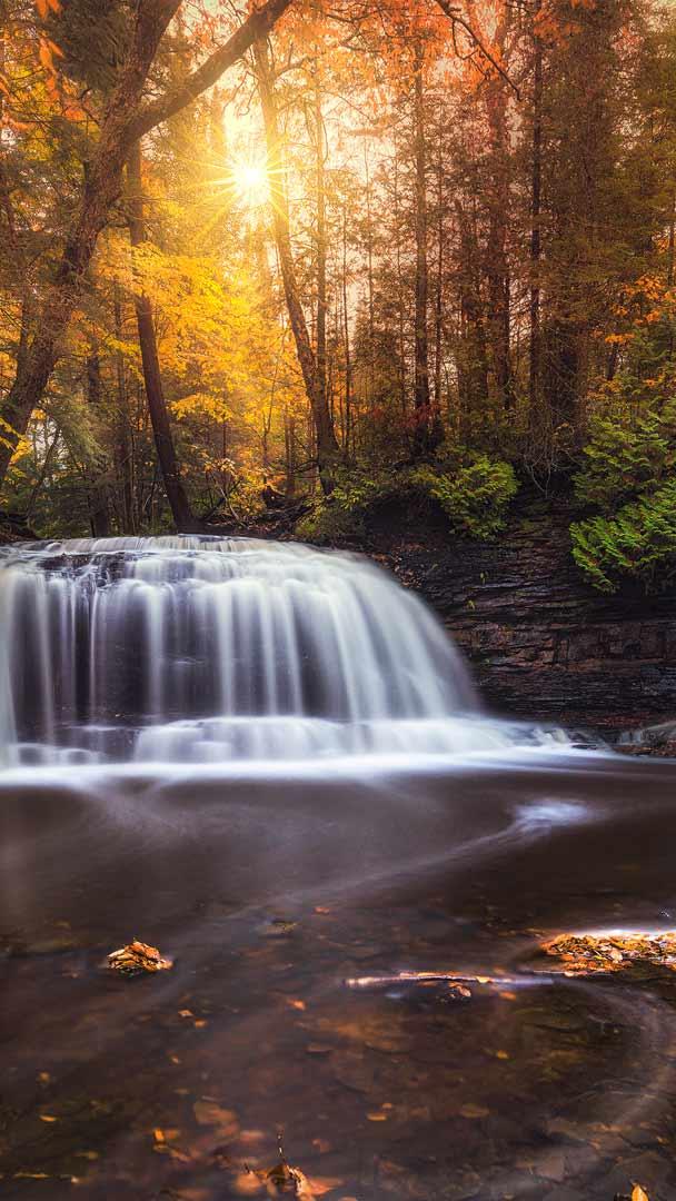 En el corazón del Rock River Canyon Wilderness, en la Península Superior de Michigan, Estados Unidos, se encuentra Rock River Falls, una cascada de cinco metros rodeada de bosques y paisajes moldeados por glaciares. Esta región conserva huellas de pueblos indígenas de habla algonquina, exploradores franceses y británicos, y más tarde de inmigrantes finlandeses, suecos y franco-canadienses que llegaron en el siglo XIX con la minería y la tala.