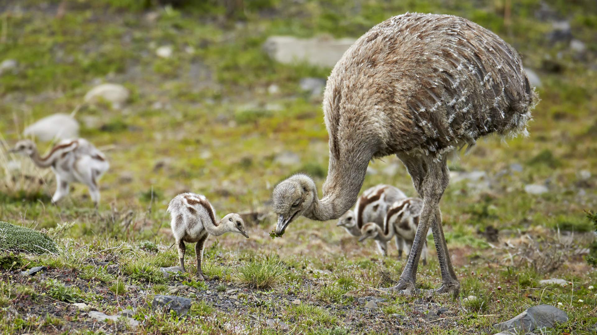 Le saviez-vous ? Chez le nandou de Darwin, c’est le mâle qui élève les petits. Après s’être accouplé avec plusieurs femelles, il construit un nid commun, couve jusqu’à 50 œufs, puis élève seul les poussins pendant près de six mois.