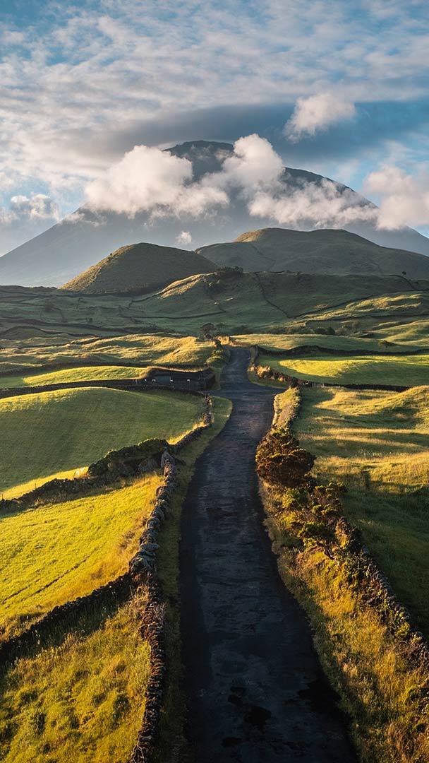 En route vers le ciel Route sinueuse vers le Mont Pico, Portugal (© Marco Bottigelli/Getty Images)