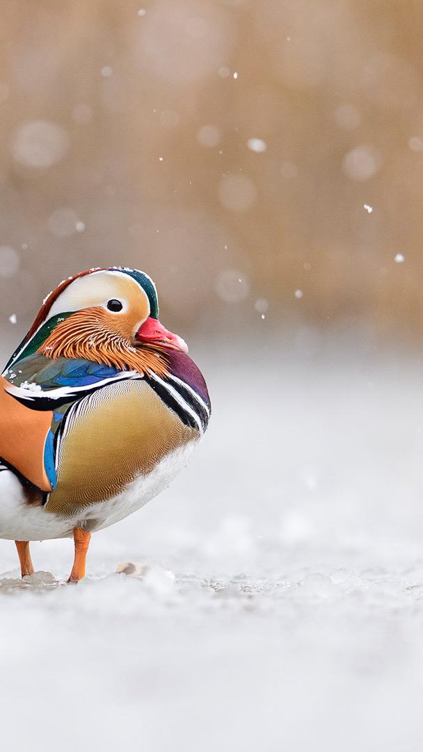 Un canard coloré pour égayer l’hiver Canard mandarin, Richmond Park, Londres, Royaume-Uni (© Oscar Dewhurst/Minden Pictures)