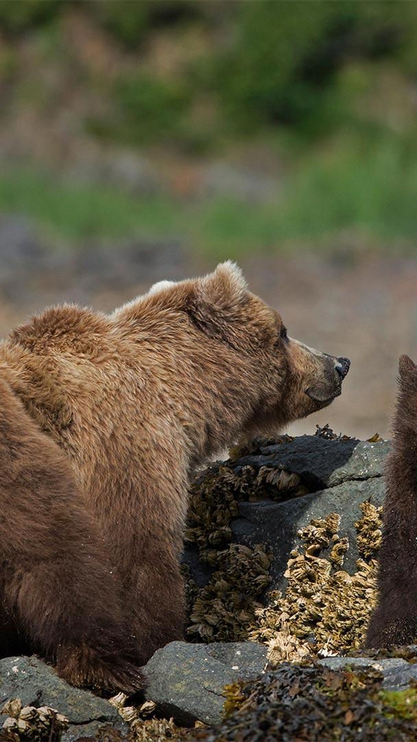 Des ours heureux Maman ours brun et son ourson dans le parc national et réserve de Katmai, Alaska (© Suzi Eszterhas/Minden Pictures)