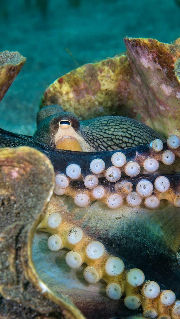 La pieuvre noix de coco est réputée pour être l"un des animaux les plus intelligents de la planète en démontrant un talent exceptionnel pour construire des abris astucieux à partir de divers débris. Elle est le seul invertébré à utiliser des outils pour fabriquer des refuges qui la protègent des prédateurs.