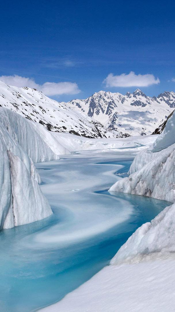 La Mer de Glace, l’un des glaciers les plus célèbres des Alpes françaises, est située sur le versant septentrional du massif du Mont-Blanc, près de Chamonix. Elle s"étend sur environ 7 kilomètres de long et 200 mètres de profondeur, c"est le plus grand glacier de France. Sa formation remonte à des millénaires, façonnée par le mouvement lent et constant de la glace.