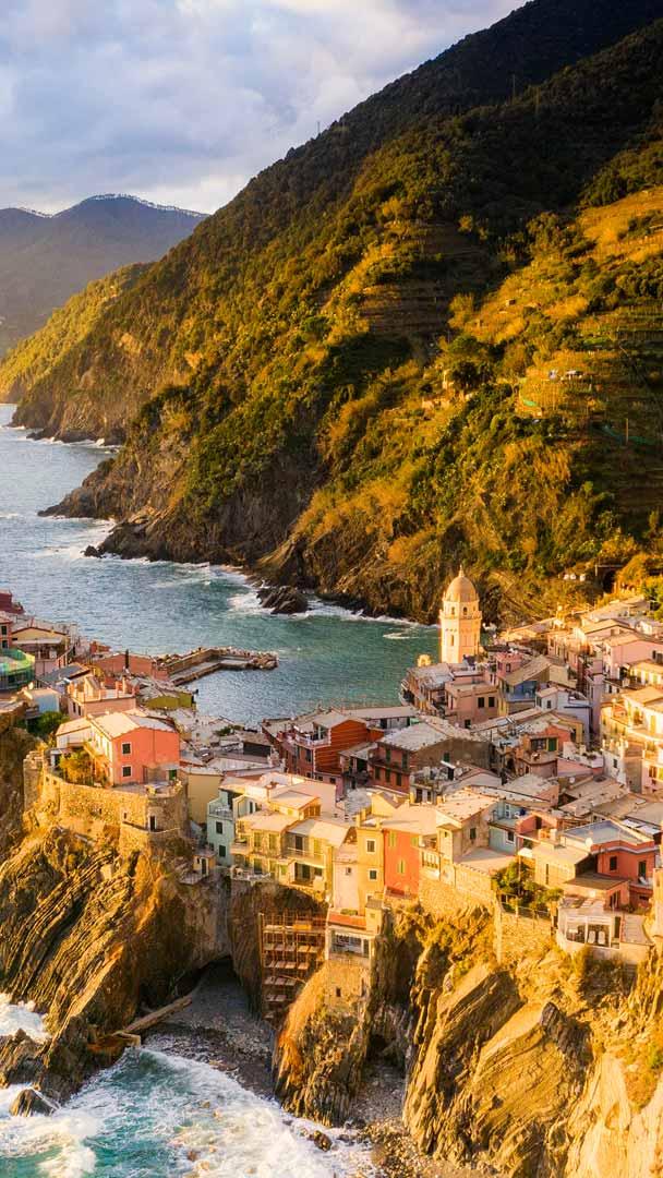 Perché sur les falaises escarpées de la Riviera italienne, Vernazza est un village des Cinque Terre, dans le nord-ouest de l’Italie, où des vieilles bâtisses bordent la côte de la mer Ligurienne et la vie est animée par l’agitation des pêcheurs. Vernazza tire son nom du vin indigène, la « vernaccia », signifiant « local » ou « nôtre ».