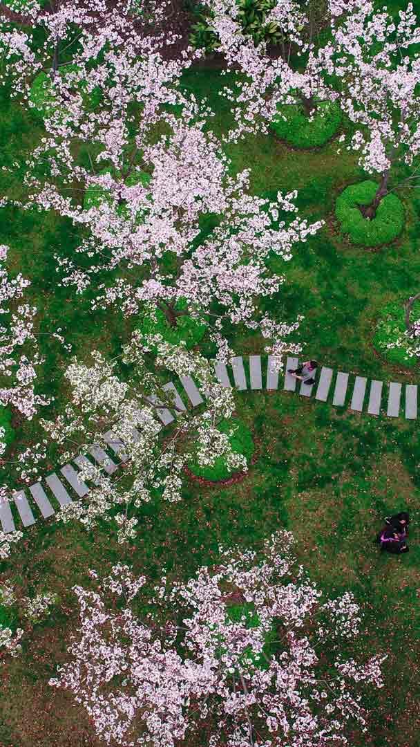 In spring, nature puts on a vibrant display, marking the start of the season with the bloom of cherry blossoms. Around the globe, from Japan to the United States, this spectacle captivates millions of hearts. In China, cherry blossoms, known as "Yinghua," bloom from late March to late April, adorning landscapes with delicate hues of pink and white. Revered for centuries by the Chinese, these fragile petals hold profound significance in their traditions, symbolising renewal, hope and the transient nature of life. There are various locations in China to view these blossoms, including Wuhan"s East Lake Cherry Blossom Park, Shanghai"s Gucun Park and Luxun Park, as well as Beijing"s Yuyuantan Park. Cherry blossoms look similar to plum blossoms, but an easy way to distinguish between the two is to look at their petals. Cherry blossom petals have split ends, but plum blossoms don"t.