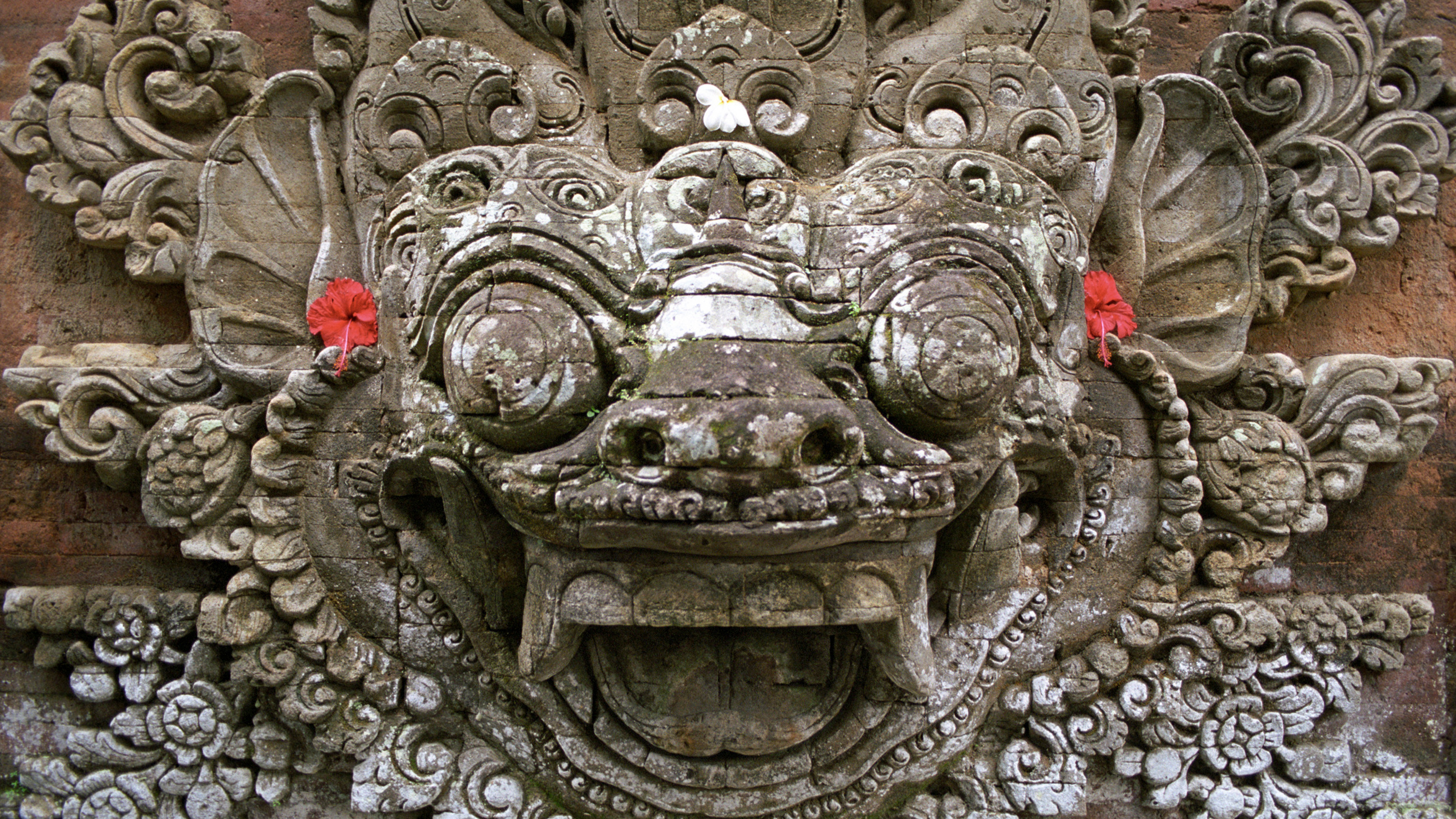 Among untamed rainforests, rice paddies and steep ravines lies the village of Ubud, the cultural heart of Bali, Indonesia. According to legend, a Hindu priest, Rsi Markandaya, arrived at the island of Bali in the 8th century, discovering an area abundant in medicinal herbs and plants. The name of Ubud derives from the word "ubad," meaning medicine. Nestled within the verdant landscape, the village is rich in Hindu temples and bountiful in local mythology. The mythical character seen in today’s image is Barong, a panther-like creature, the king of spirits and a symbol of good fortune and prosperity. The Barong dance, performed in a decorated animal mask, is native to Bali.