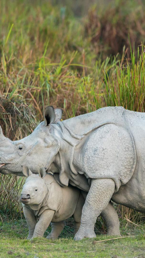What"s grey and grumpy looking? Of course, a rhino. Today"s image features a rhino mother with her calf in Kaziranga National Park"s expanse. The Indian rhinoceros, also known as the greater one-horned rhinoceros, is native to the Indian subcontinent. It"s the second-largest living rhinoceros species, with adult males weighing between 2.07 and 2.2 tonnes and adult females around 1.6 tonnes. These rhinos are mostly solitary, coming together only during the breeding season or when raising their young.