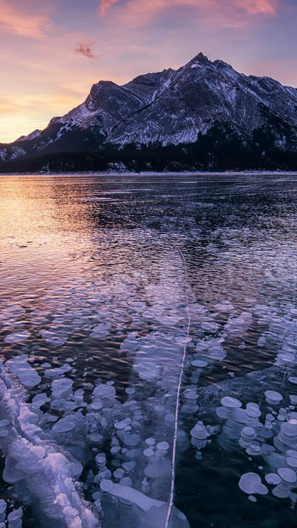 Scenic Mount Michener Mount Michener and a frozen Abraham Lake in Alberta, Canada (© Tom Mackie/plainpicture)