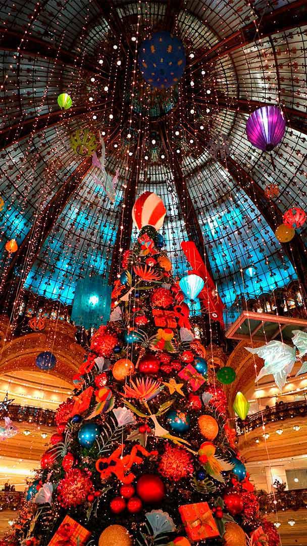 Season of light in the City of Light Christmas tree of the Galeries Lafayette in Paris, France (© Geoffroy Van der Hasselt/AFP via Getty Images)