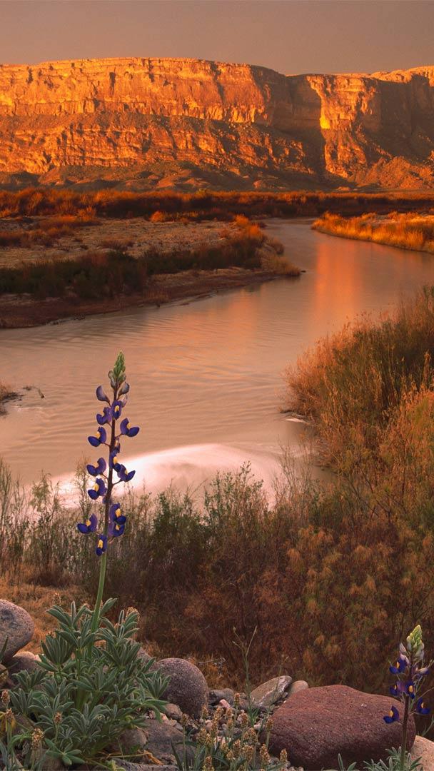 A remote oasis in the Chihuahuan Desert Cliffs of the Sierra Ponce and Rio Grande River, Big Bend National Park, Texas (© Tim Fitzharris/Minden Pictures)