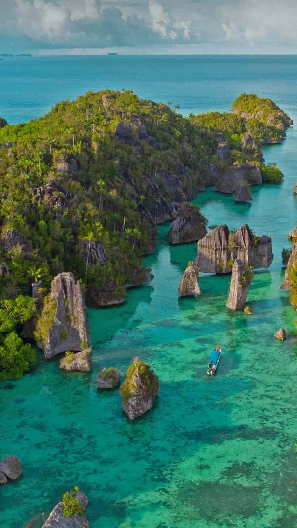 An underwater paradise to explore Misool Island, one of the four major islands in the Raja Ampat Islands in West Papua, Indonesia (© Elsy Saldek/Getty Images)