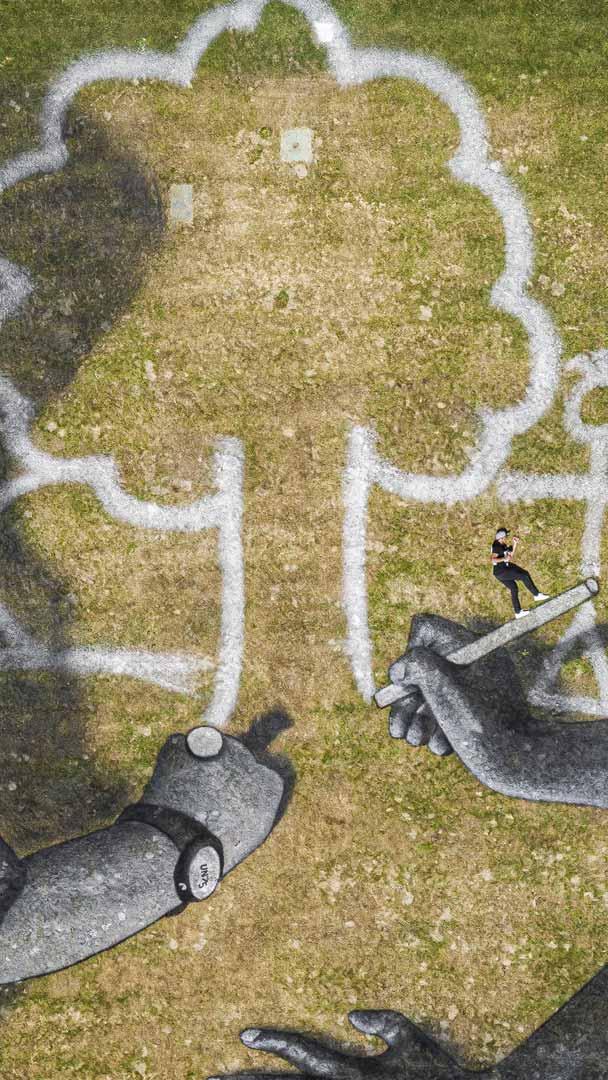 Disegnano il futuro? Dipinto di Saype, sede delle Nazioni Unite, Ginevra, Svizzera (© Valentin Flauraud/EPA-EFE/Shutterstock)