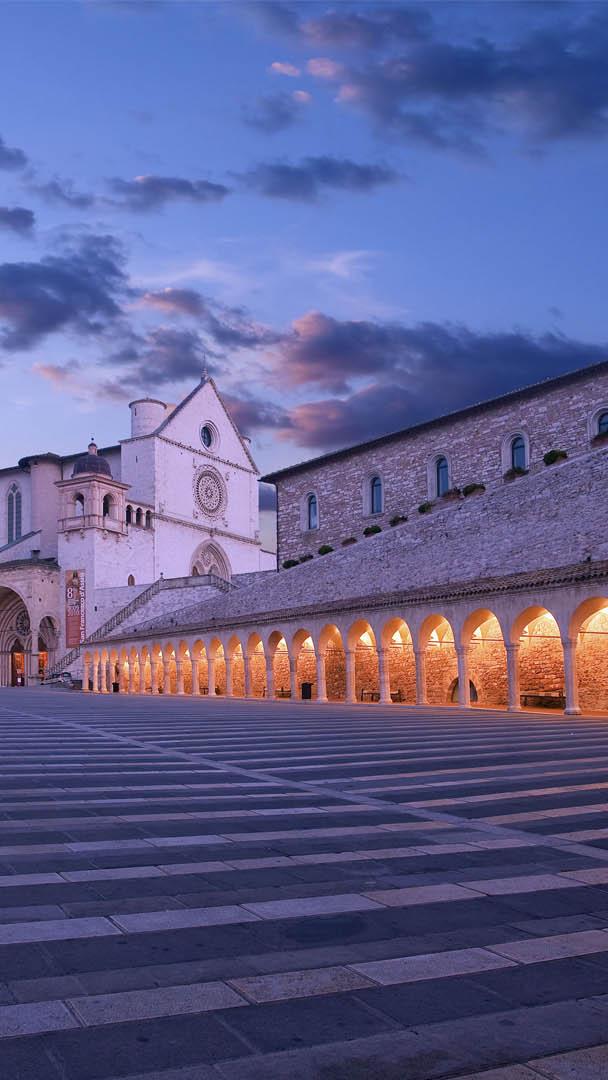 Le luci della sera sulla Basilica Basilica di Assisi (© Maurizio Rellini/Sime/eStock Photo)