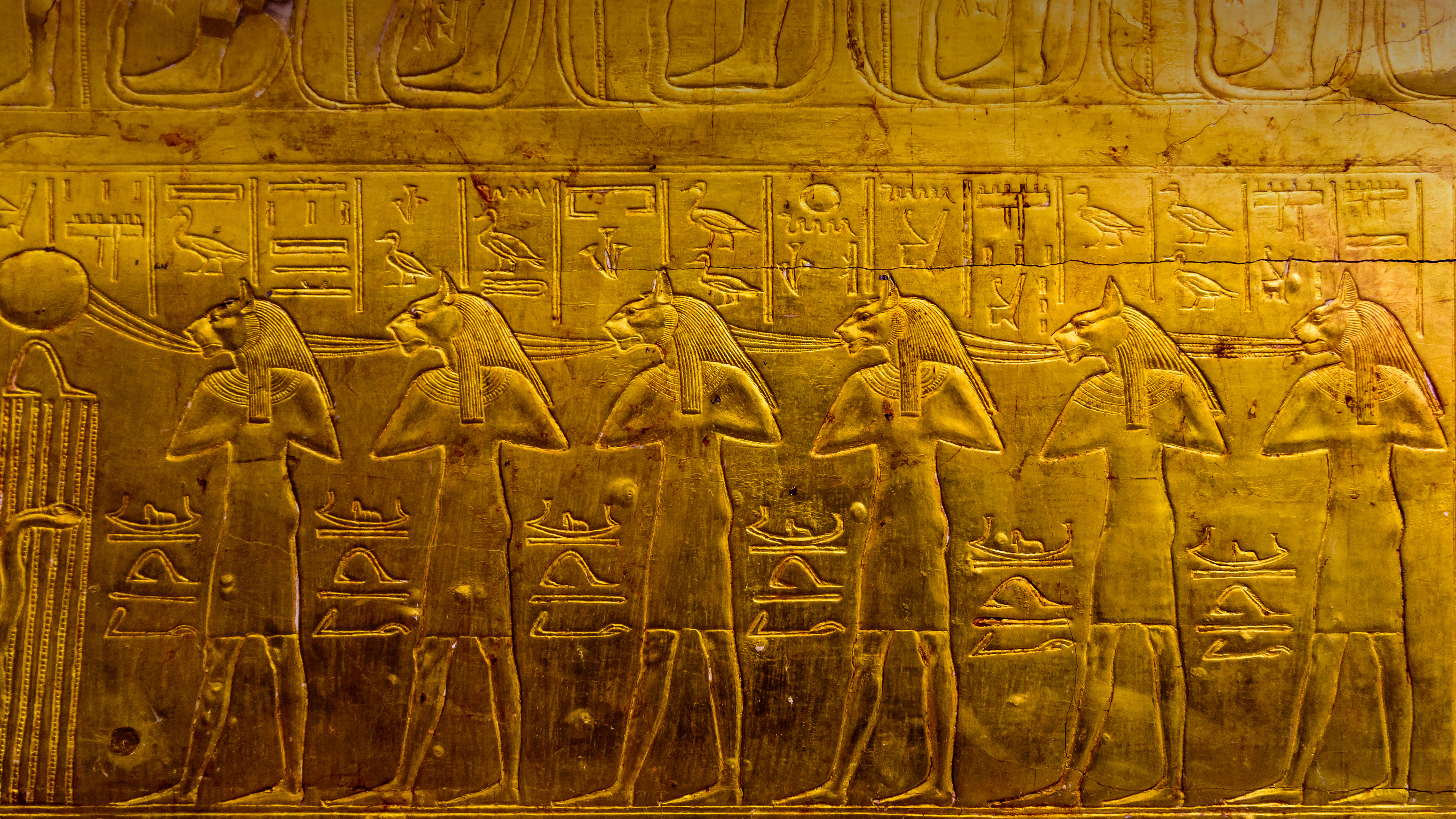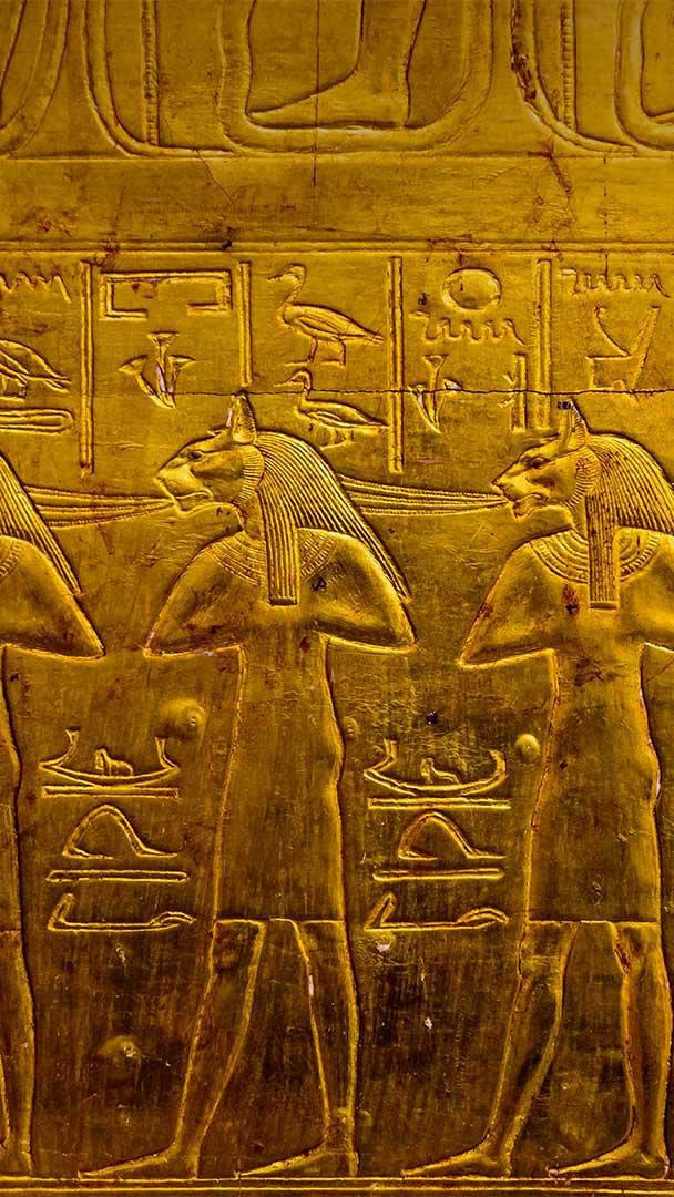 Un secolo dalla scoperta della tomba di Tutankhamon Divinità raffigurate sulla tomba di Tutankhamon al Museo Egizio del Cairo, Egitto (© Stefan Lippmann/Universal Images Group via Getty Images)