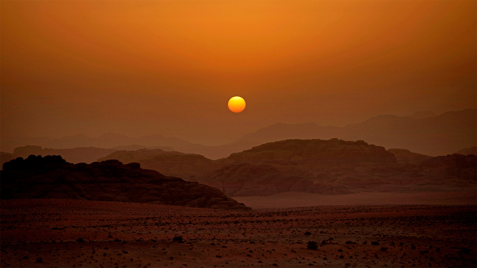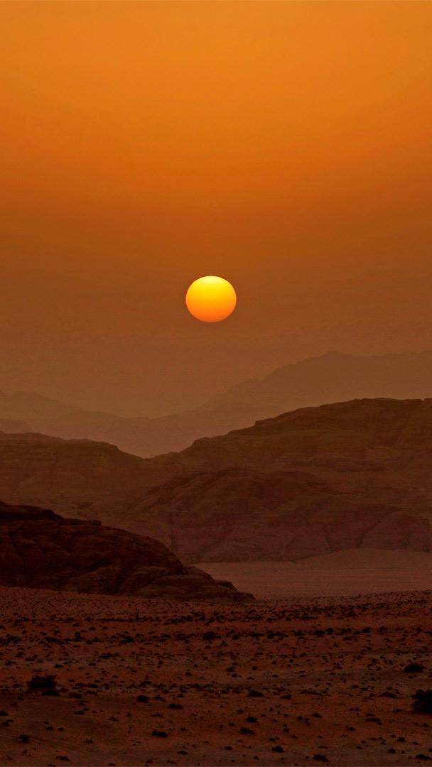 Il sole tramonta sulla Valle della Luna Wadi Rum, Giordania (© Thomas Coex/AFP via Getty Images)