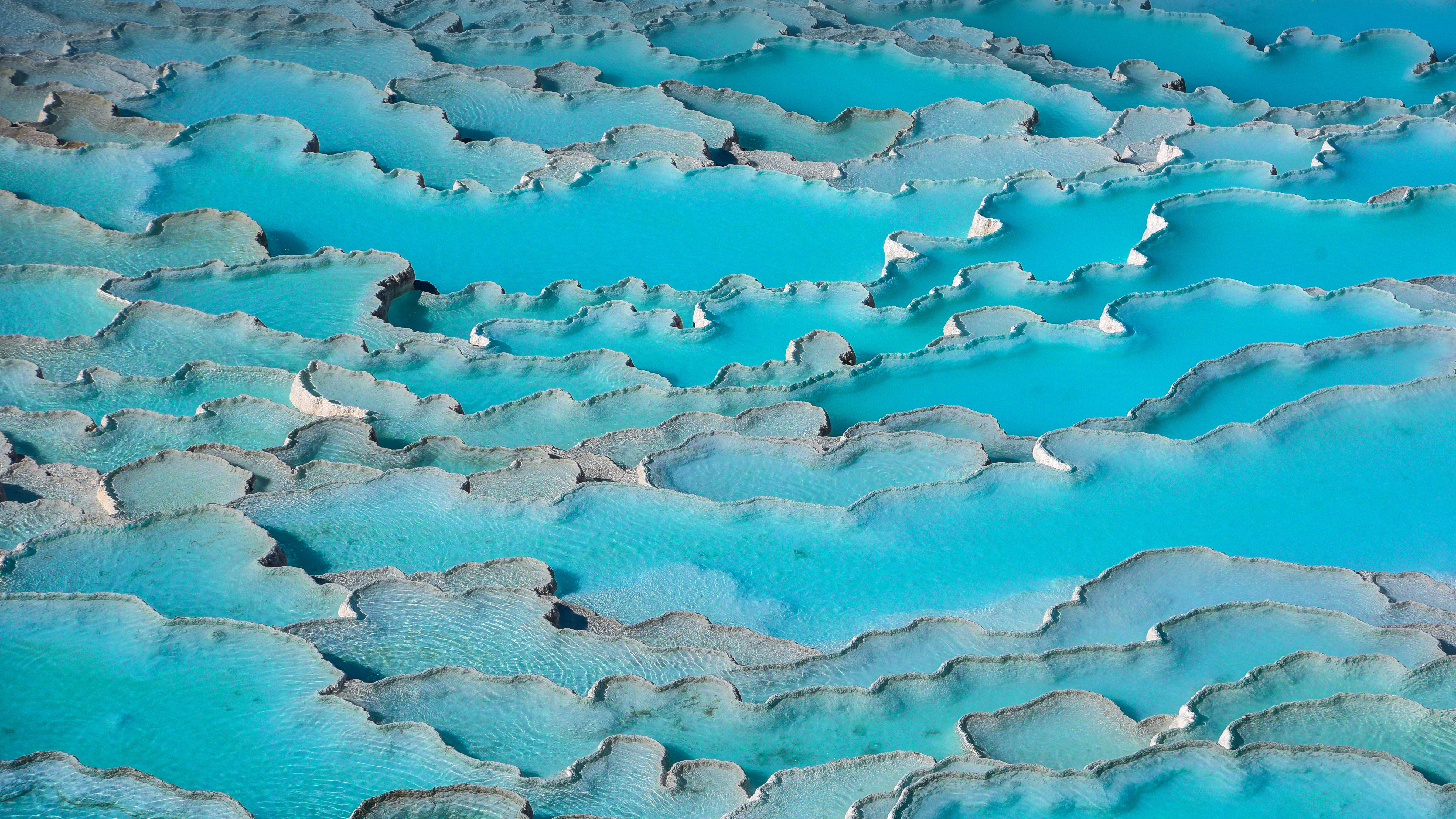 Sorgenti termali celestiali Terrazze di travertino, Pamukkale, Turchia (© bybostanci/Getty Images)