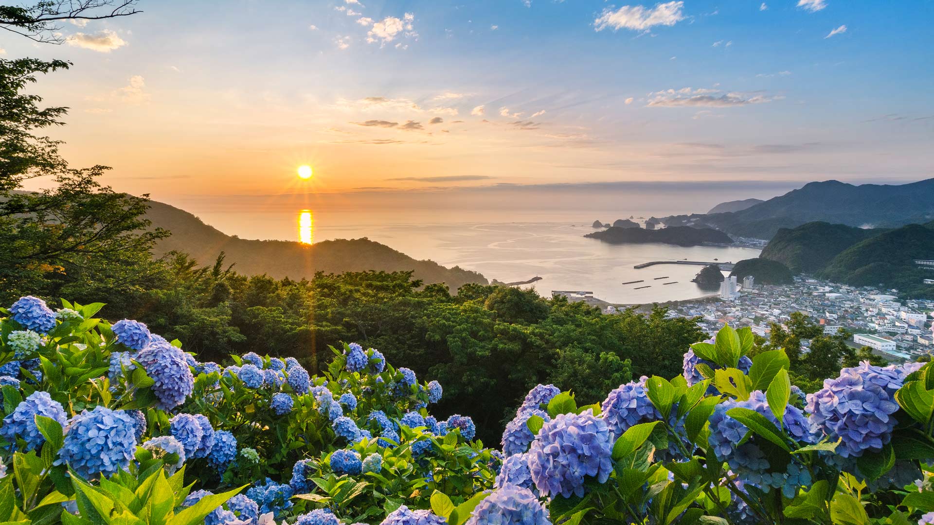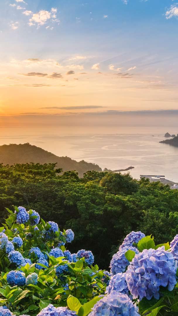 今日 6 月 11 日は入梅。実際の梅雨入りは気象庁が発表しますが、暦の上で梅雨入りとされる日です。そして、梅雨の花といえば、やはりアジサイ。雨に濡れて咲く姿が印象的ですが、静岡県松崎町の牛原山「あじさいの丘」では、晴れ渡る空の下、陽光を浴びて輝くアジサイが一面に広がります。梅雨の合間に訪れる、束の間のまばゆい風景です…