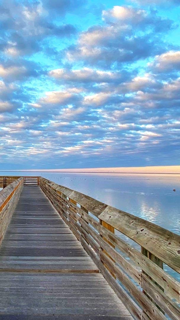 海につながる木の遊歩道 サウス・パドレ島, 米国 テキサス州 (© Jeff R Clow/Getty Images)