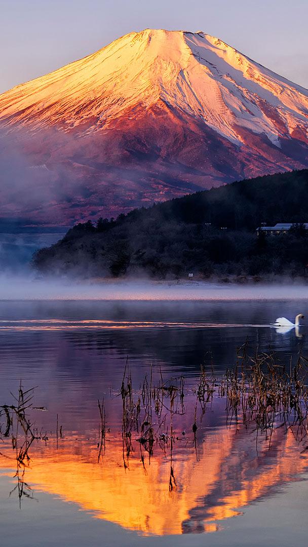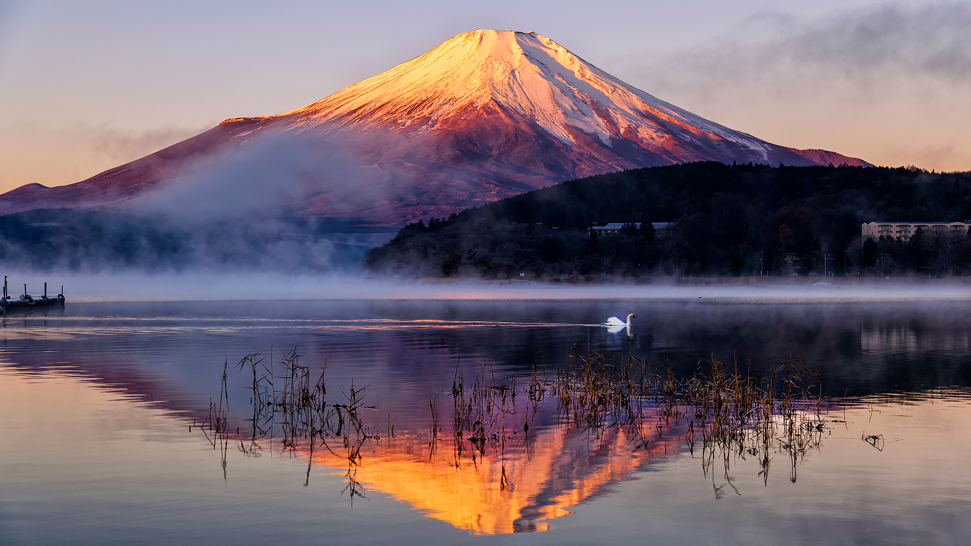 今日は富士山の日 水面に映る紅富士, 山梨 (© Nyoman Sundra/Getty Images)