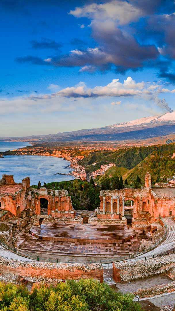 The play’s the thing Ancient theatre of Taormina in Sicily, Italy (© Antonino Bartuccio/eStock Photo)