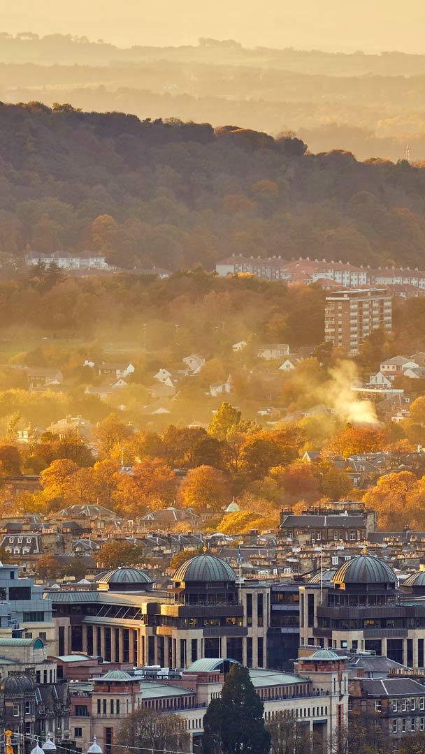 Edinburgh cityscape and St Marys Cathedral steeples © Andrew Merry/Moment/Getty Images
