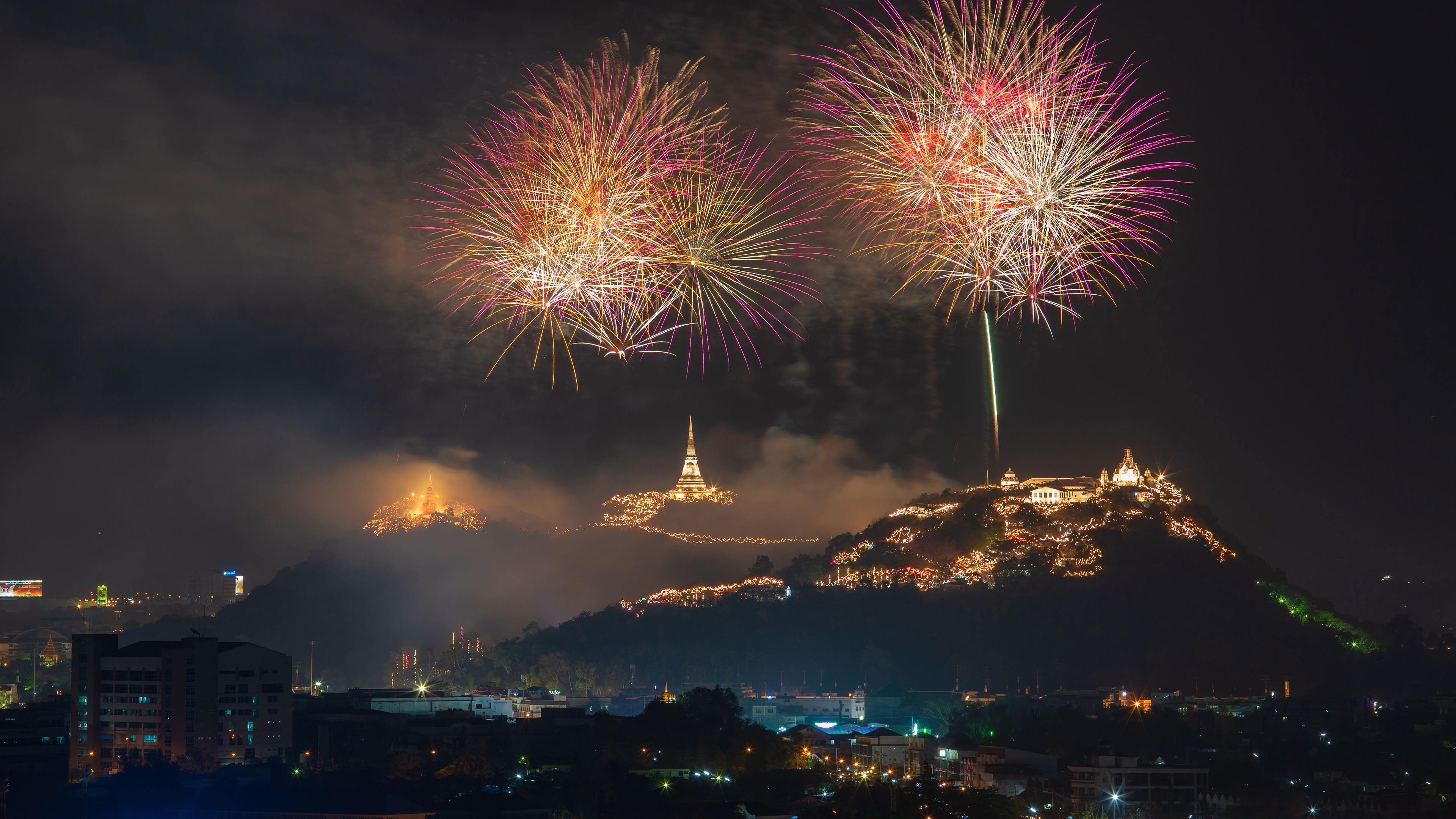It"s time for the final countdown! New Year"s Eve is celebrated tonight in many countries to see out the old year and hope for the promises of the new one. The traditions of different nations can be quite creative when it comes to saying farewell to the year. If you"re not in the United Kingdom greeting the arrival of midnight with the chimes of London"s Big Ben, you might watch the Times Square Ball Drop in the United States, smash crockery in Denmark, stuff your mouth with grapes for the countdown in Spain or hang onions outside your door in Greece. Celebrators in Thailand might visit a temple for good luck or watch the fireworks illuminating Phra Nakhon Khiri, also known as "holy city hill," based in the historical park of the same name. Wherever you celebrate, have a great one. See you next year!
