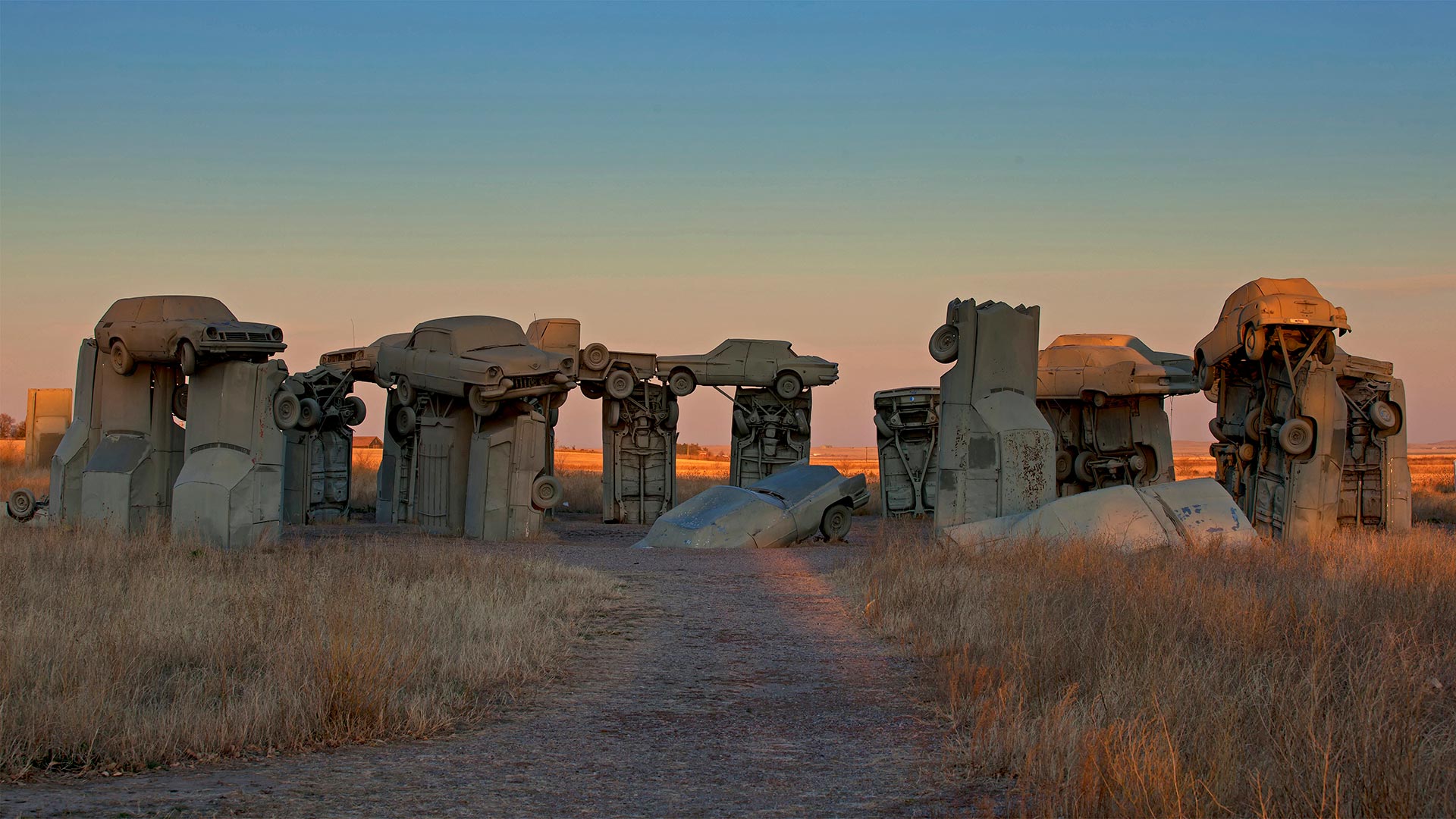 Today we’re visiting Carhenge, a popular roadside attraction in western Nebraska. Carhenge is the passion project of Jim Reinders, who came up with the idea to memorialize his father. Like Stonehenge, Carhenge is a glimpse of culture now past—the heyday of the American automobile. While living in England, Reinders studied Stonehenge"s structure, which allowed him to replicate the formation using 39 vehicles, including cars, trucks, and even one Jeep. Reinders and about 35 family members built the attraction in June 1987. And with another nod to Stonehenge, they dedicated it on the summer solstice that same month. Since then, more than 60,000 people have visited the attraction and it’s appeared in music videos, TV shows, commercials, and even on an album cover.