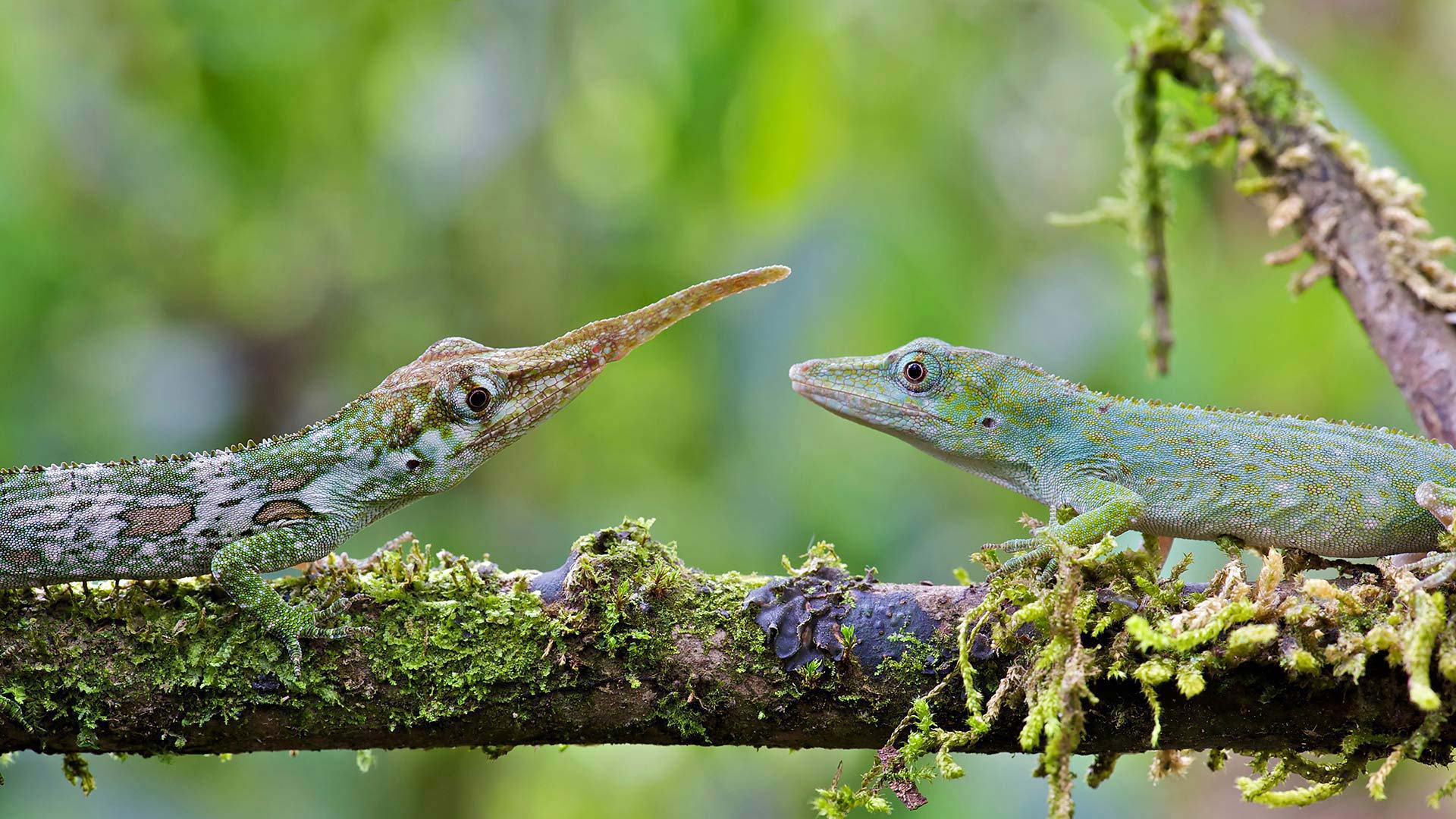 The curious case of the Ecuadorian horned anole has fascinated herpetologists, making it an excellent mascot for World Lizard Day. Its story starts in 1953, when a single male specimen of the species was discovered near the Ecuadorian town of Mindo. Over the next 13 years, only a handful of additional Ecuadorian horned anoles were found, all males, and each sporting the same long snout that earned its species the nickname ‘Pinocchio lizard.’ So rare and secretive is this anole, that for the next four decades no more individuals were found, and scientists feared the Pinocchio lizard had gone extinct. It wasn’t spotted again until 2004, when researchers glimpsed a female for the first time. She didn’t have a long snout, leading scientists to believe the male’s sword-like appendage is primarily used in courtship (insert your own joke here).