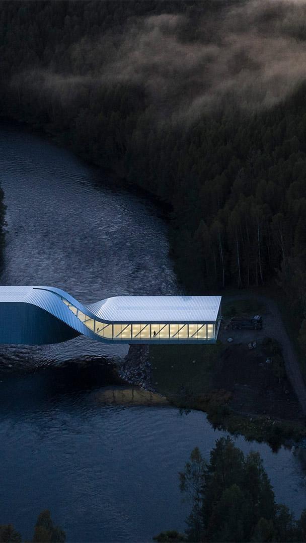 No, it"s not a sci-fi movie set—but maybe it should be. The Twist seems like an intrusion from the future amidst the dense woods and preserved historical buildings of Jevnaker, Norway, home to the Kistefos Museum"s sculpture park. The Twist is a bridge, but also an art gallery. Its unique construction features straight slats set at increasing angles as one moves toward the center—"like a stack of books," as its architects at the Bjarke Ingels Group describe it—to create a 90-degree turn where a wall becomes the ceiling and vice versa.