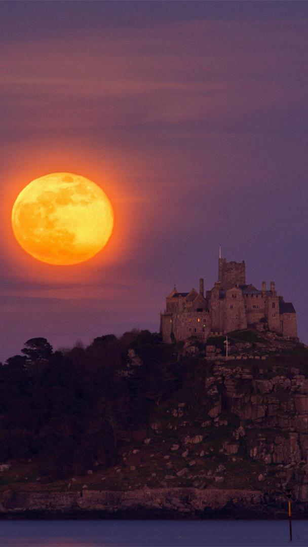 We"re seeing a vivid "pink moon" rise above St. Michael"s Mount—a granite-encrusted isle connected to the rugged peninsula of Cornwall, England, by sandy flats and a man-made causeway that submerge at high tide. The same order of monks that established France"s Mont-Saint-Michel built a church and priory here in the 12th century. In ensuing centuries of war, the insular monastic outpost was fortified into the imposing castle we see today. Privately purchased in 1659, the mount was opened to the public in 1954—and is still managed by members of the family that bought it over 350 years ago.